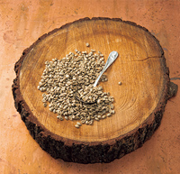 「焙煎士になくてはならない道具」との問いに答え、カッピング時の試飲スプーンを選んだ。店のロゴ入りの特注品だが、製品自体はスタンダード。レユニオン島のブルボンポワントゥと。