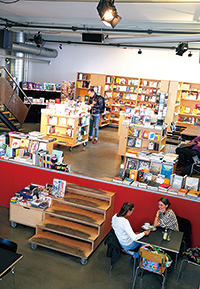 今でこそ世界各地にある、ブックストアと合体したコーヒーショップ。その草分け的な店が、17年前にチューリッヒ北西部の倉庫街でスタートしたこの「スフィアーズ」だ。