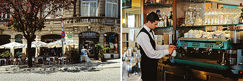 コーヒー、音楽、アート作品……ポルトとブラジルとのつながりを強く感じさせる、もう1軒の老舗。のどかな昼とエキサイティングな夜、コーヒーは同じでも、それを取り巻く雰囲気はまったく異なる。