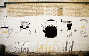 シカゴのコーヒー・シーンをリードしてきたのがインテリゲンチャ・コーヒー&ティー。それを猛追する存在がこのボウ・トラスだと言われている。現在シカゴ市内に3店舗あるが、年内には6店舗に増える。来年にはニューヨーク出店も決まっている。店名は、かつて穀類の倉庫だった店の天井に残る弓形の梁(=bow Truss)から付けられた。店内に飾られたカヌーやソリが五大湖の岸辺を感じさせるが、特に際立ったコンセプトがあるようには見えない。知り合いの家の倉庫でコーヒーを飲む感じがリラックスさせる。
