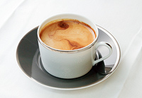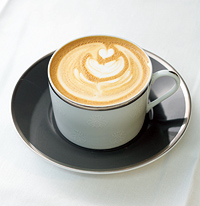 上の配合のエスプレッソをダブルでいれ、5~6倍量の牛乳を泡立てて合わせる。殺菌済みの全乳で、良質な脂肪味を感じる牛乳を選ぶ。