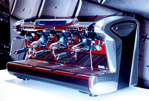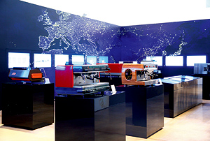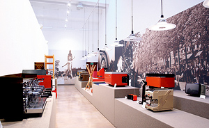 エスプレッソ・マシーンのデザインと歴史の流れを年代別に知ることができる。