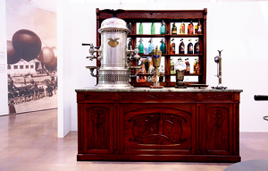 20世紀初期のバールを再現。エレガントな機械。だがこの時代の機械は圧力が低く、エスプレッソの味は苦くて、あまり美味しくなかったのだとか。石炭の香りが勝るコーヒーだったらしい。