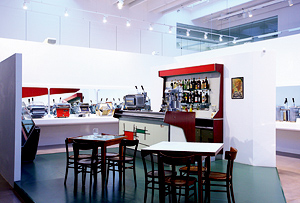 50年代のイタリアのバールを再現。横型になった機械がスタイリッシュだ。口当たりがよくクリーミーで美味しいコーヒーが登場。MADE IN ITALYのマシーンに人気が集中したのもこの時代。