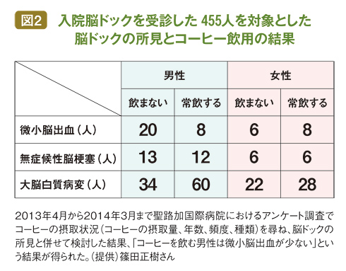 そうしてコーヒーの摂取状況(コーヒーの摂取量、年数、頻度、種類)を尋ね、脳ドックの所見と併せて検討したのだ(図2)。