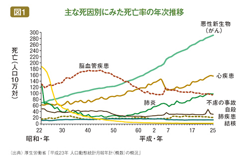 脳梗塞と脳出血、くも膜下出血など脳の血管に障害が起きる脳卒中は、がん(悪性新生物)、心疾患、肺炎に次ぐ第4位の死亡原因となっている(脳卒中を含む脳血管疾患)(図1)。