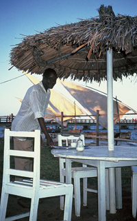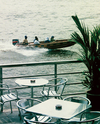 初めて来た時、海の渡しに乗った。大きな帆の下、長旅で汚れた私のシャツを見て「洗ってあげようか」と笑顔の女の子。降りた浜の近くには、嬉しいことにオープンカフェが。