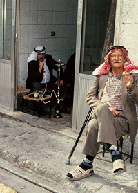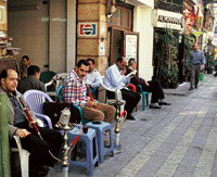 カイロの中心街。男たちが水パイプでたばこを吸っている。エジプトのカフェならではの光景。