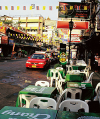 貧乏旅行者のための安宿街だったバンコクのカオサンロード。宿の下にはカフェがあった。