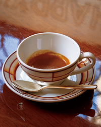 酒豪伝説的なエピソードは枚挙にいとまがないヘミングウェイだが、コーヒーについての記述や逸話はそれほど多くない。しかし、生涯の少なからぬ時間をフランス、スペイン、イタリア、キューバといった〝コーヒー大国〟で過ごした彼がコーヒー党であったことは間違いない。パリのカフェ、クローズリー・デ・リラのカフェ・クレームを愛し、イタリア・トリノではビチェリン(*1)というコーヒードリンクを絶賛したという話が残っている。アフリカのサファリで撮られた写真には、テントで読書に耽る文豪の傍にブラックコーヒーがなみなみと注がれたカップが写っている。