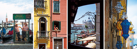(左から3番目)ハリーズ・バーからカナル・グランデ越しにサンタ・マリア・デッラ・サルーテ聖堂を望む。