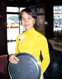 世界一美しいと思われる民族衣装のアオザイ。ベトナム式コーヒーをサービスしてくれた。