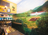 昔ながらのコーヒー農園の風景が描かれた店内内壁。
