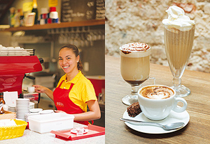 コーヒーの焙煎を行っているのは3店舗。ウエートレスの笑顔があふれる。