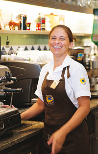 コーヒーの焙煎を行っているのは3店舗。ウエートレスの笑顔があふれる。