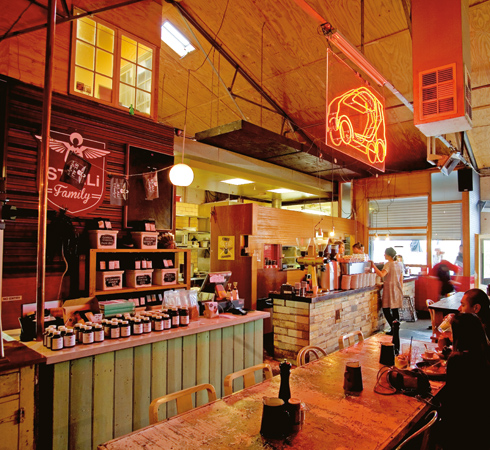 コーヒーは、以前は複数の豆を使ってきたが、6ヵ月前、リバーサイド・コーヒー・ロースターズというサプライヤーにカスタム・ローストしてもらうブレンド1本に絞った。ソフトな味わいで、フード・メニューの素材重視の味を殺さぬよう、配慮がなされている。このサプライヤー自体がオーガニックやサステーナビリティを標榜しているところ。コーヒーを飲みに来ていた大学生のケイト・マッケヴィットさんは、「ここに来ると、自分がとてもまともなことをしている気がして、気分がいいんです」と言う。「ゴミ・ゼロ」に象徴されるライフスタイルがサプライヤーや顧客へと広がっていく。その媒介の役割をコーヒーが務めている。