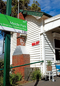 店名の「MART」は正式には「R」がひっくり返って鏡文字になっている。鏡に写して見ると「TRAM」。このカフェは1887年に建てられたトラムの駅舎が基になっている。今もホームはトラム96号線のミドル・パークという無人駅として利用されており、10分おきに電車が停車する。メルボルンの中心部から約4.5キロメートル。地元の常連客の他、カイトボードのメッカとして知られるセント・キルダ・ビーチに向かう人々が途中下車して立ち寄る。オープンは2005年12月。現在のオーナー、リチャードとケイトのアンステー夫妻が前のオーナーからバトンを受け継いだのは2011年10月のことだ。「私たちは元々この店の客でした」と、妻のケイトさんが説明する。「自分たちでカフェの経営をしようと動いていたのですが、ある物件が決まる直前にキャンセルされてしまって。その話をこの店でしていたら、前のオーナーが『ちょうどこの店を売る相手を探していたんだ』って」。