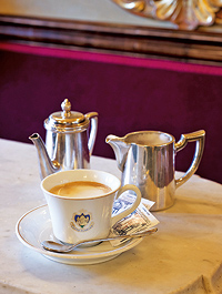 「当時のカフェはコーヒーを飲むだけでなく、トランプや賭け事に興じ、政治について語り合い、お金持ちの客を目当てに来る娼婦もいたりと、社交場の役割も兼ねていました。2室で開業した店は1858年に拡張されて4室になり、現在目にするロココ風の優美な装飾と絵画で埋め尽くされました」