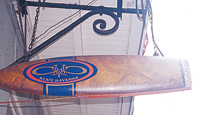 意表を突くスウェーデン人。船のイカリを陸に置けばアートだ。楽器も宙に浮かべて看板に。