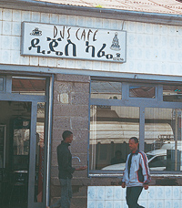 看板に「CAFE」と公用語のアムハラ語を併記。アムハラ語でカフェは「ブンナ・ベイト」だ。