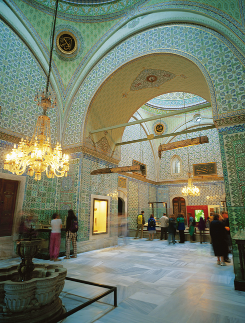 オスマン帝国の政治の中枢であったトプカプ宮殿。1459年に着工し、約16年の歳月をかけて完成。約70万㎡の敷地は行政区、スルタンの居住区、ハレムの3地区に分かれていた。オスマン帝国滅亡後、1924年に博物館として甦り、今に至る。精緻なタイル装飾など、美しい宮殿建築も見どころのひとつ。