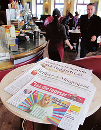ケーキは日替わりが多いため、メニューに名前が記載されていないことも多い。ショーケースに並ぶケーキを指差し「イッヒ・ヘッテ・ゲルネ・アイン・シュトゥック・フォン・デム・クーヘン Ich hätte gerne ein Stück von dem Kuchen(このケーキをひとつ下さい)」と注文しよう。デコレーションされていない素朴なケーキには生クリームを添えても美味しいので、お好みで。新聞や雑誌は断りを入れずに自由に読める。店を出る時には元のところに戻そう。