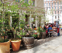 2007年から食事を出す店では禁煙が義務づけられたドイツ。扉で仕切られた喫煙室を持つ店も、基本的に喫煙者は屋外の席に座るかタバコを吸う時だけ外に出るしかない。灰皿がなかったら「カン・イッヒ・アイネン・アッシェンベッヒャー・ハーベン? Kann ich einen Aschenbecher haben?(灰皿もらえますか?)」と尋ねよう。日照時間が少ないドイツでは、タバコを吸わなくても、また少しくらい寒くても太陽さえ出ていればテラス席で少しでも日に当たりたいという人は多い。アナ・ブルーメでは、膝かけ毛布が準備されているが、冬場はテラス席に暖房が置かれている店もある。
