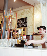 店のモットーは、豆自体の味をカバーしない浅めの焙煎と、味のバランスに合わせて選ぶ抽出法。クリアな味わいが、一口ごとにほっ、と心身をほぐしてくれる。そんな味に呼応するのか、この店のお客はみなリラックスムードだ。カウンターでスタッフたちとマニア話に花を咲かせる常連も、いれたての一杯を前に顔をほころばせる。「ここのカプチーノは、パリで一番美味しいんだよ」