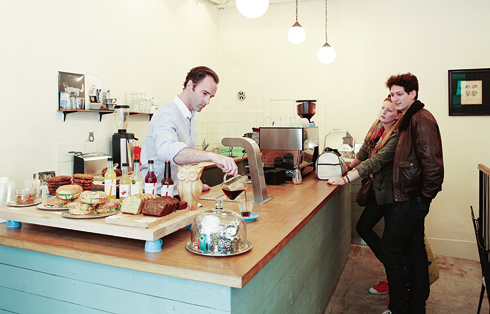 左:野菜を多く使い、健康に配慮したフードメニュー。週末にはコーヒー生産国をテーマとしたスペシャルブランチも提案。右:オーナーのひとり、トム・クラーク。
