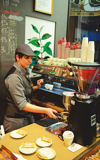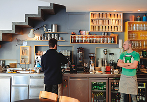 彼らの目当ては、焙煎機で焙煎したばかりのコーヒー豆でいれるエスプレッソ。一杯一杯、目の前で腕利きのバリスタが煎りたての豆を挽いていれてくれるエスプレッソは格別の味だ。客の多くは少々緊張した面持ちでコーヒーカップに静かに口をつける。そして次の瞬間、彼らの顔は和らぎ、友人と、バリスタと、見知らぬ他の客との会話が始まるのだ。