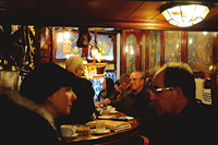 創業以来変わらぬユニフォーム姿で働くウェイターに歴史を感じる。