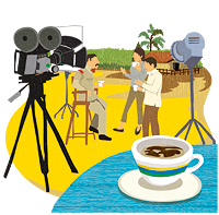 ブラジルの映画撮影は、コーヒーブレイクから。