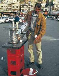 首都アンマン。水パイプでたばこを吸うカフェの老人も、路上のコーヒー屋も写真好き。
