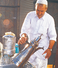 憧れのシルクロードに遠い昔からある、中央アジア風カフェ。コーヒーを飲む人は少ない。