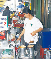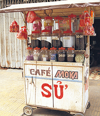 屋台の国なので路上コーヒー屋も多い。ビニール袋に入れ、輪ゴムで留めてテイクアウト。