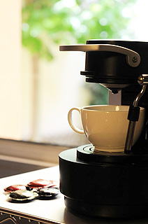 忙しい朝には、電動エスプレッソマシーンが大活躍。