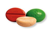 抗酸化作用、抗菌作用のあるコーヒーエキスの入った石鹸。生豆と焙煎した豆をイメージし、3種類の異なる色と香りを展開している。各90g、5.90レアル。