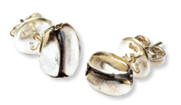 本物のコーヒー豆から型を取った銀のピアスは、ジュエリーデザイナー、サンドラ・セオリンの作品。現在サントス市のコーヒー博物館でのみ販売中。170レアル。