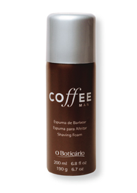 コーヒーエキス入りシェービング・フォームは上の写真の香水と同じシリーズ。コーヒーの香りは気付かないほどだが泡立ちは抜群。200ml、28レアル。