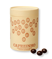 コーヒー豆が一粒ずつ入ったチョコレート。ビターな大人の味わいだ。コーヒー豆デザインのパッケージは木製容器なので食べ終わった後も大切に使いたい。200g、26.70レアル。
