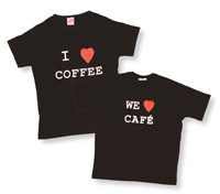 カフェ・スプリシーのTシャツ。写真のタイプの他に、コーヒーについての詩が書かれたものやコーヒー豆でハートを描いた柄など5種を揃える。各38レアル。