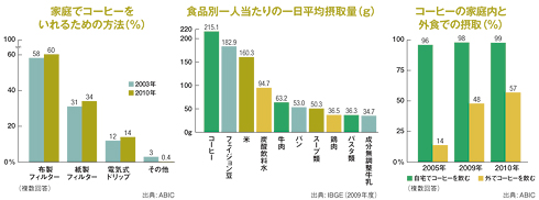 また外食でコーヒーを飲むケースが顕著に増えているという。ABICの調査によると2005年にはわずか14%の人が外でコーヒーを飲むと答えていたのに対して、2010年には57%を記録した。実に4倍である。佐藤氏によれば、コーヒーを美味しくいれるためのエスプレッソマシンやその他の器具が飲食店に普及したことが原因だというが、それに加えて経済成長により国民の購買力が確実に上がっていることも挙げられるだろう。