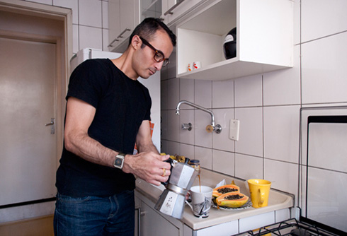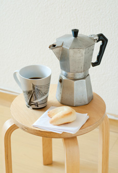 朝一のメールチェックをしながらの朝食に欠かさないのがエスプレッソで、直火式エスプレッソメーカーで淹れたコーヒーにわずかに砂糖を加えて飲むのが好みだそう。2年前に友人から買ったエスプレッソメーカーは、飲みきれる量を淹れられる点がお気に入り。