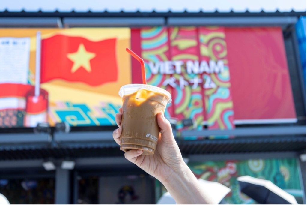 パビリオンでは小規模ながらもベトナムならではのバインミーやコーヒーが売られており、ベトナムコーヒーで使用されている豆は、ベトナムでは知らない人はいないほど有名なコーヒーメーカー「チュングエン」社のものだそうです。濃いコーヒーと練乳を使ったクラシックなベトナムコーヒーは力強さと甘さのバランスが絶妙な味わいで、広い万博内を歩き疲れたときにもぴったりです。