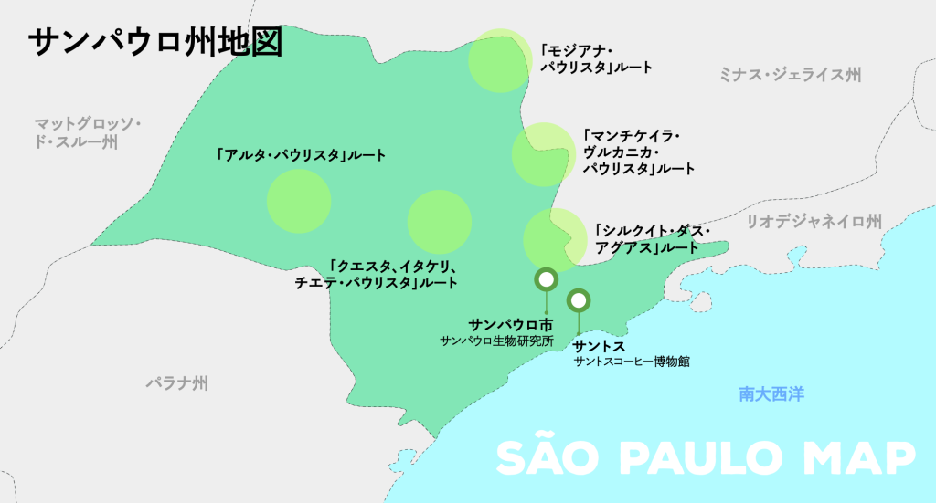 今回は「サンパウロ・コーヒールート」の代表的な観光ルートにある3つの農園と、主要施設を紹介します。ぜひバーチャル・ツアーをお楽しみください!