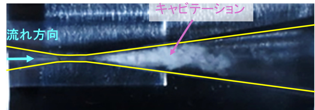 キャビテーションとは、水が流れる速度が増すことで圧力が低下し、水が泡になる現象のこと。工場施設や機械の稼働時に発生する現象として知られていますが、泡が潰れる際に金属を変形させるほどの強い衝撃力が生じるため、従来は機器への悪影響が懸念されていました。