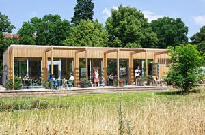 テラスの前に広がる緑地に、近隣の人たちが集う。ドイツ・ベルリンから